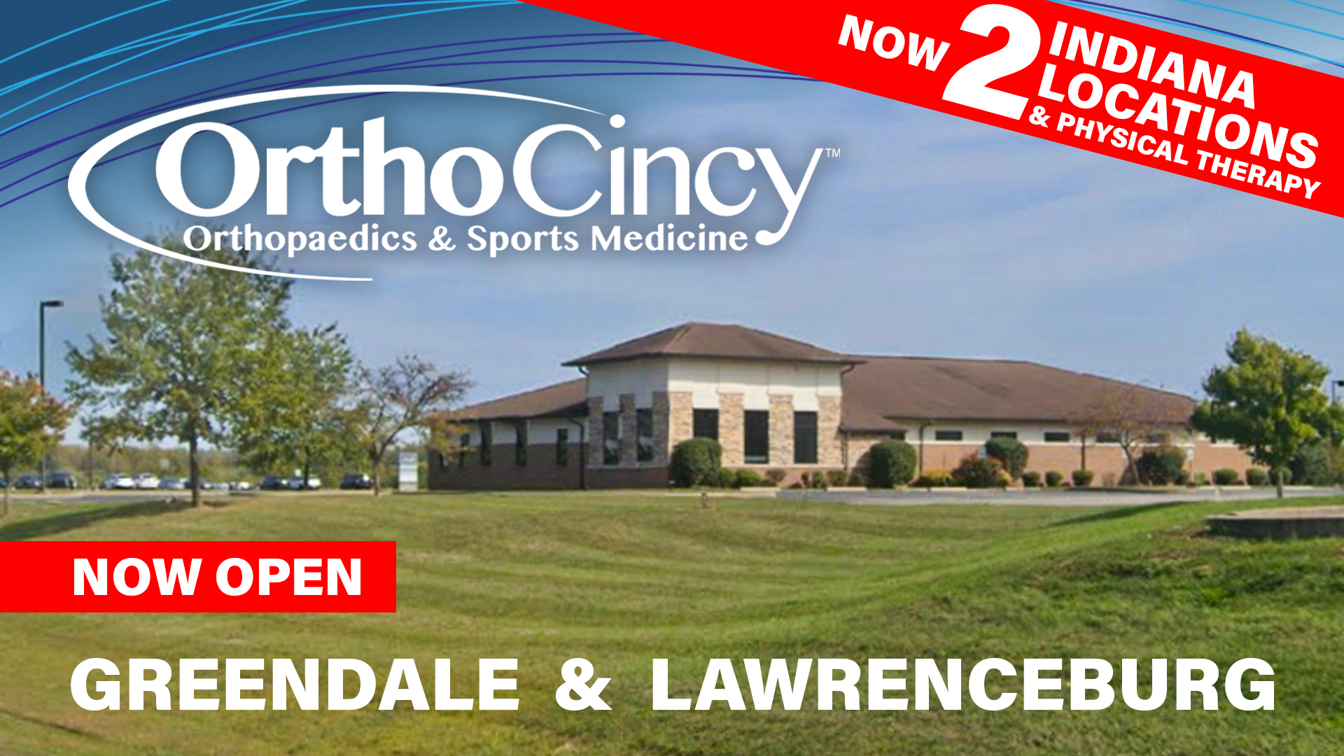 CINCINNATI, OH – OrthoCincy Orthopaedics & Sports Medicine is excited to announce the opening of a second Southeast Indiana clinic location with full-service physical therapy – 1600 Flossie Dr., Greendale, IN 47025. This new OrthoCincy Greendale office is now open and complements OrthoCincy’s well established Lawrenceburg office.